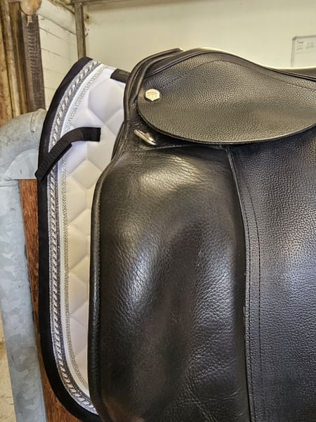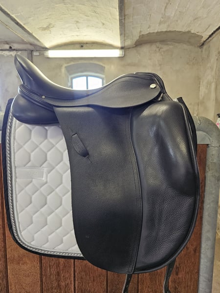 Super schicker, fast neuer Albion SLK Ultima Platinum 16,5" Kaum gebrauchter Dressursattel. Er hat extra lange Sattelblätter und einen tiefen Sitz. Er ist MW in der Kammerweite. Er hat eine schmale Taille – NS Narrow Seat. Super weiches, geschmeidiges Leder. Passt sowohl für ein Pferd mit kurzem Rücken als auch für ein Pony.