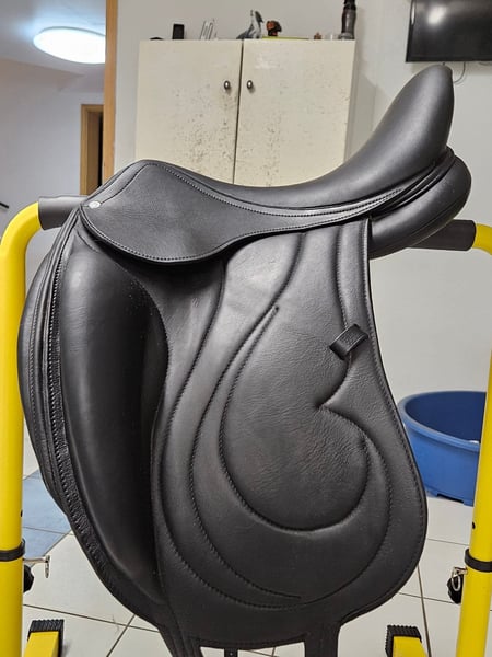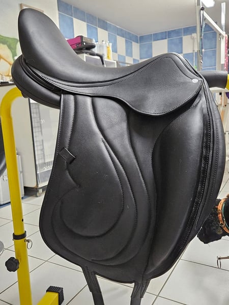 Verkaufe Antarés Cadence 17.5 Zoll Sattel in sehr guten Zustand von 2023 . Er wird regelmässig gepflegt und von Antares Sattler überprüft. Er ist in einem sehr guten gepflegten Zustand. Original Rechnung Vorhanden Der Sattel ist für unserem breiten Wallach gekauft worden leider passt er nicht mehr. Der Sattel wird nicht zur Probe verschickt Er kann in Beelitz Brandenbrg angeschaut werden. Ich beantworte gerne weitere Fragen . Realistische Preisvotschlage werden gerne angenommen Beschreibung des Sattels Der Antarès Cadence ist ein handgefertigter französischer Monoblatt-Dressursattel, der für hohen Komfort, engen Kontakt zum Pferd und Stabilität im Training sowie Wettkampf bekannt ist. Er zeichnet sich durch einen tiefen Sitz, große Pauschen für Beinstabilität und eine V-Begurtung zur optimalen Druckverteilung aus, oft gefertigt aus weichem Leder mit verstärktem Buchenholzbaum.