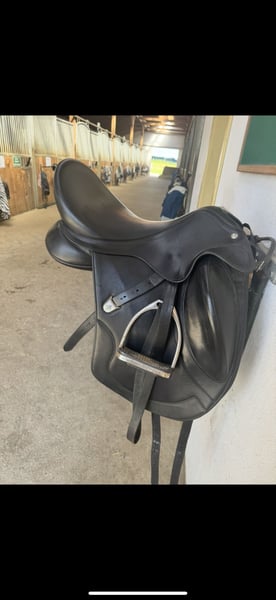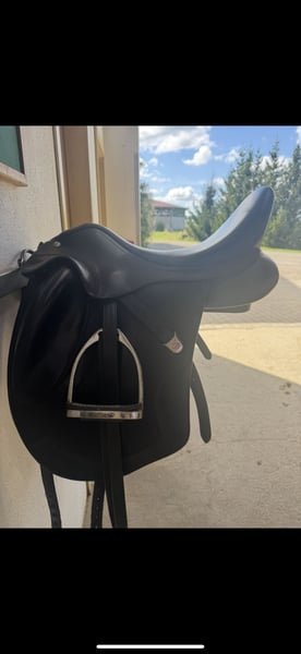 Zum Verkauf steht mein Bates Artiste Dressursattel in der Größe 16,5 ~ 17 Zoll, schwarz, Monoblatt-Ausführung. Der Sattel ist 1,5 Jahre alt und wurde stets pfleglich behandelt. Kopfeisen austauschbar (EASY-CHANGE System) CAIR Air System – passt sich optimal an den Pferderücken an Breiter Wirbelkanal für maximale Bewegungsfreiheit Anatomisch geformte Oberschenkelpauschen für einen stabilen Sitz Monoblatt – direkter Kontakt zum Pferd Toller, ausbalancierter Sitzkomfort Neupreis: 4100,00€ Preisvorstellung: 3.300€ VB Privatverkauf – keine Garantie oder Rücknahme.