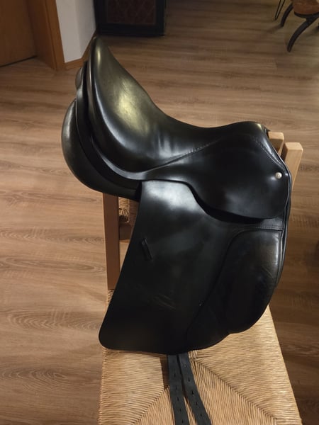 Verkauf neuwertigen Dressursattel ( 17,5 Zoll Kammerweite Mittel ) top gepflegt, Modell Caprice von der renommierten Sattlerei Spirig aus St Gallen. Der Sattel wurde 2023 gefertigt, ist wenig genutzt und überzeugt durch seinen tiefen Sitz, sowie einer hochwertigen Lederquallität