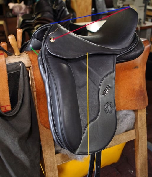 Ich verkaufe meinen schönen Hennig Dressursattel, lange Gurtstripoen, Kurzgurt, schwarz, Leder, Maße Sitzgröße 17,5 Zoll (rote Linie), gelbe Linie 37cm, blaue Linie 40cm, kammerbreite 14cm (grüne Linie), siehe Abbildung