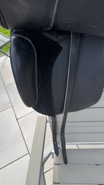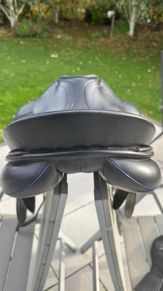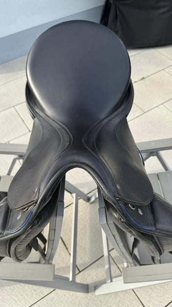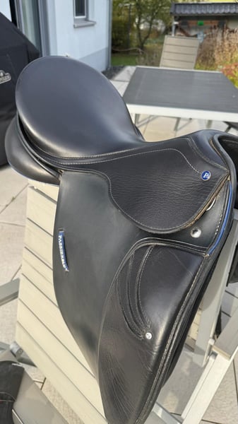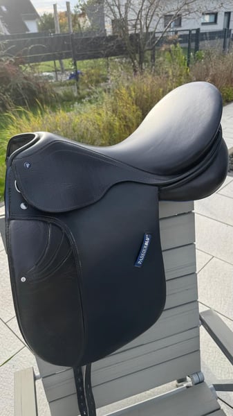Europäisches Rind-Leder Sitz und Kissen: Selloil-Leder; Knielage: Selloil-Leder mit Premium Crystals und Lackledereinsatz; kleine Satteltaschen: mit Selloil-Leder weich doubliert; Kissenkeilkeder und vorne an großer Satteltasche: blauer Lackkedereinsatz Der PASSIERBLU Style ist der perfekte Dressur-Sattel für alle, die einen besonderen Sattel suchen. Ein Highlight ist das funkelnde Premium Crystal auf der Knielage, das mit drei geschwungenen Lackledereinsätzen kombiniert für eine elegante Optik sorgt. Eine weitere Besonderheit ist der blaue Keder an der großen Satteltasche vorne und im Kissenkeil. Der angenehme, tiefe Sitz, die hohen Schenkelpauschen und die doublierten kleinen Satteltaschen sorgen dafür, dass Reiterinnen und Reiter sicher, rutschfest und entspannt in der richtigen Position auf dem Pferd sitzen können. Sehr guter Zustand! Sattelschoner inklusive.
