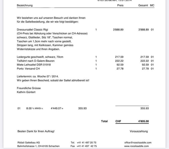 Röösli Dressur Sattel 18 Zoll