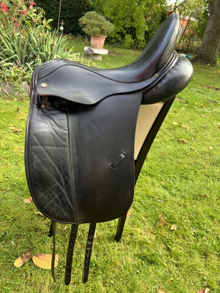 Gebrauchter Dressursattel 18,5 Zoll Standort in Flensburg. Nach Absprache auch Hamburg, Verden und Bamberg möglich - hierfür wird ein kleiner Aufpreis berechnet.