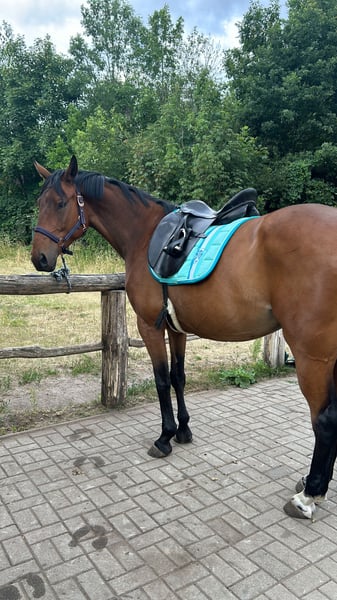 Verkaufe aufgrund von Umzug und Verkauf des Pferdes mein Zubehör. Es handelt sich um einen Sommer Dressursattel 17,5 und eine Kammerweite von 32 müsste ich meinen. Er hat normale Gebrauchsspuren