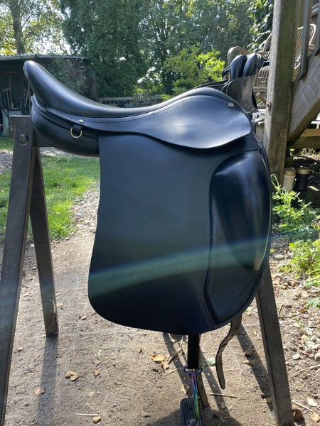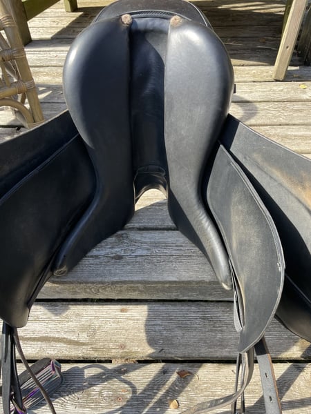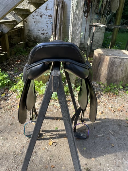 Ich verkaufe hier meinen ASE Vario B13 Sattel, weil er meinem Pferd leider nicht mehr passt. Man sitzt schön nah am Pferd und durch die Kniepauschen guten Halt. Ich bin damit immer sehr gerne geritten. Sitzgröße müsste 17,5 sein. Auflagefläche sind 44cm. Aktuell ist das rote Kopfeisen von Eques A Baum verbaut. Das kann mit zwei Schrauben gewechselt werden. Der Sattel ist in einem guten Zustand, nur das eine Sattelblatt hat einige Kratzer. Die Steigbügel habe ich immer unter dem Sattelblatt genutzt. Im April diesen Jahres ist der Sattel von einer Sattlerin gecheckt worden. Füllung, Strumpfen etc. sind gut. Die Steigbügel werden nicht mit verkauft. Versand möglich aber nicht zur Probe. Bei Hinterlegung des Kaufpreises ist eine Anprobe möglich. Privatverkauf deswegen keine Garantie oder Rücknahme. Bei Fragen gerne melden.