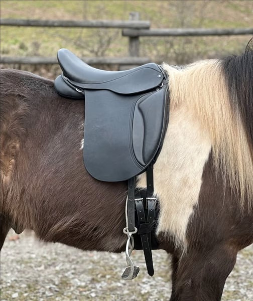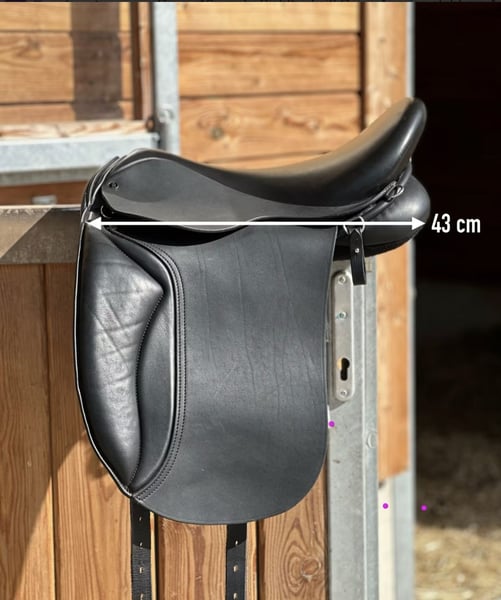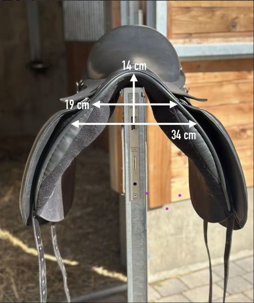 Kurzer Islandpferdesattel für breite gerade Rücken. Auflagefläche ca. 40 cm, Gesamtlänge 43 cm, 17“ Sitz, Kammweite 34, breiter Wirbelkanal (Maße siehe Fotos) Hersteller: Jeremy Rudge Saddlery England Modell: G5 Icelandic mit Ponybaum Neuwertiger Vorführer (2024), ca. 10x geritten Farbe/Leder: Schwarz Heritage Polsterung: Schafwolle Ausstattung: Flacher Soft-Sitz mit schmaler Taillierung (Anfänger geeignet), Kissenunterseite aus Wollserge (besonders rückenfreundlich), Klettpauschen, D-Ringe Einsatz: Freizeit/Tölt/Dressur Zubehör: Steigbügelhalter, Schonbezug Preis: 1.900€ inkl. MwSt. (Neupreis 3.900€) Probeversand möglich: bis 3 Tage 79 € inkl. Hin- & Rückversand, jeder weitere Tag +15 € Überweisung oder PayPal (Käuferschutz) Rechnung mit MwSt.