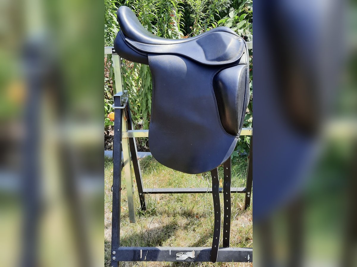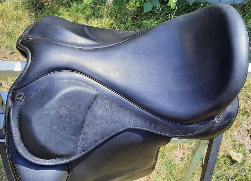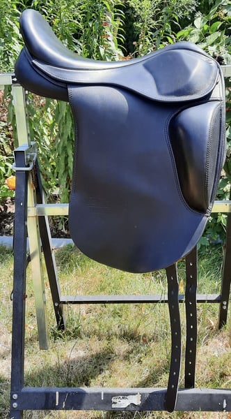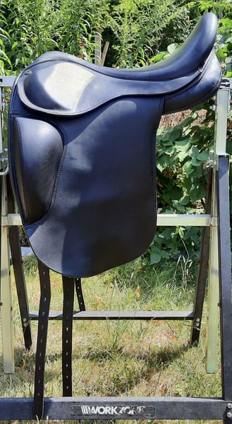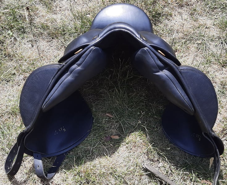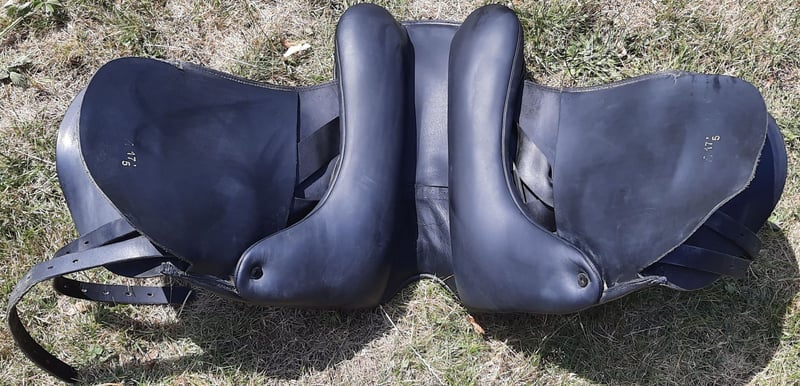 Sattel Hrafn, wurde 2021 neu bei Tölthester gekauft. Kann über das Kopfeisen verstellt werden. Zur Zeit ist das braune Kopfeisen verbaut. Der Sitz in dem Sattel ist sehr gut. Der Sattel hat 17,5 Größe.