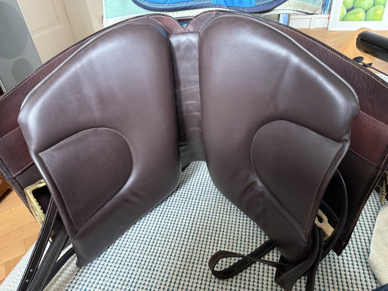 Ich biete einen wunderschönen Barocksattel aus der Manufaktur Reinhold Pecher an. Der Sattel wurde für einen kurzen Spanier angefertigt. Er hat einen Lederbaum, der sich wunderbar an den Pferderücken anpasst und trotzdem den Rücken frei lässt. Der Sattel wurde ca 2 Jahre sporadisch geritten, da noch ein anderer Sattel benutzt wurde. Dadurch hat er kaum Gebrauchsspuren und ist in einem sehr guten Zustand. Er ist super bequem. Hat in der Sitzfläche dickeres strapazierfähiges Leder und am Blatt dünneres ,um nah am Pferd zu sein. Maße bitte den Bildern entnehmen. Kopfeisen kann problemlos ausgetauscht werden. Neupreis war 3.800Euro Rechnung vorhanden.