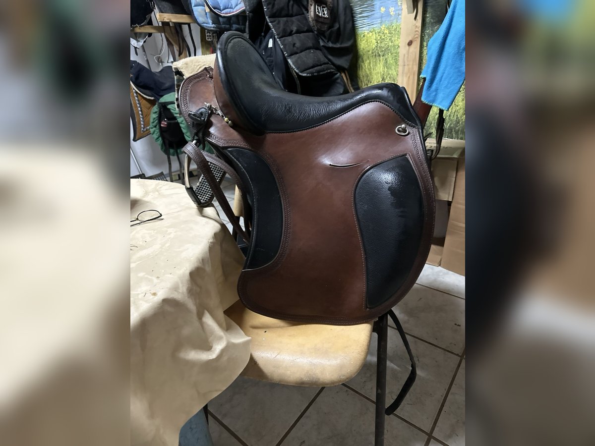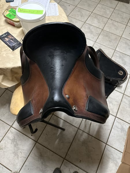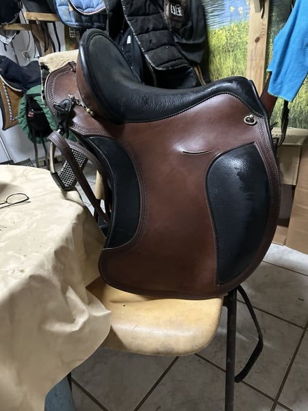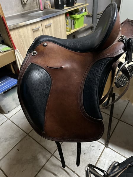 Verkaufe meinen Deuber El Campo S2 Sattel in schönem braun-schwarzem Leder. Der Sattel bietet folgende Ausstattung: • Hochwertiges braunes Leder mit schwarzen Kniepauschen • Komfortable Polsterung für Pferd und Reiter • Solide Verarbeitung von Deuber • Vielseitig einsetzbar für Dressur und Gelände Der Sattel ist gut gepflegt und in einem ordentlichen Zustand. Das Leder zeigt normale Gebrauchsspuren, ist aber noch sehr funktional. Bei Fragen melde dich gerne.