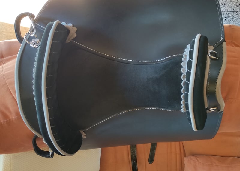 Ich verkaufe hier einen Hidalgo Caracas Spezial in schwarz mit Wildleder Sitz und grauen Akzenten. Der Sattel wurde nur zur Probe geritten, ist daher noch wie neu. Die Sitzgröße beträgt 36 cm und er wurde von Hidalgo mit der Möglichkeit ausgestattet, die Gurtung an 6 verschiedenen Stellen anzubringen, was eine Individuelle Anpassung ans Pferd verbessert (siehe letztes Bild). Der Sattel würde derzeit neu 2.640,00 € kosten, daher ein Schnäppchen. Gerne kann der Sattel gegen Hinterlegung des Kaufpreises getestet werden, ansonsten übernehme ich keine Haftung, da Privatkauf. Bei Fragen stehe ich gerne unter 0160 / 6959330 zur Verfügung.