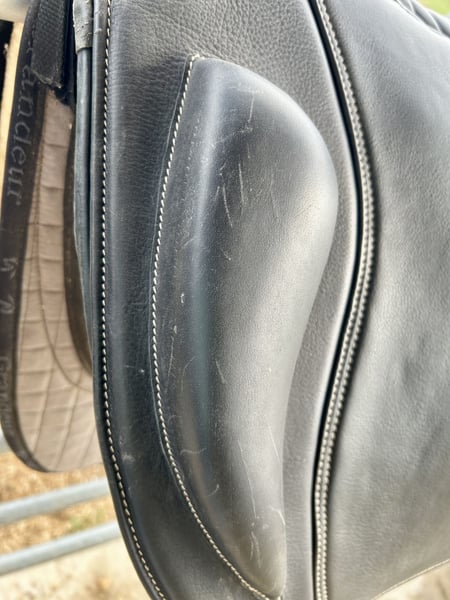 Der Sattel wurde von mir in neuwertigem Zustand gekauft, lag bei mir nur etwa dreimal auf dem Pferd und wird jetzt wegen Aufgabe des Reitsportes abgegeben. Zustand ist auf den Fotos dokumentiert. Fragen werden gerne beantwortet. Neuwertige Grandeur Satteldecke und anderes Zubehör kann gegen Kostenübernahme mit übernommen werden (Preis ist ohne Zubehör!). Im Preis enthalten ist natürlich der Sattelschoner und ein zusätzlicher Satz Klettkissen (für schwerere Reiter). Der Sattel wird nicht zum Testen verliehen. Die Versandkosten betragen ca. 20,- €