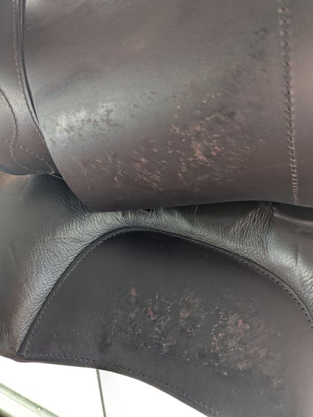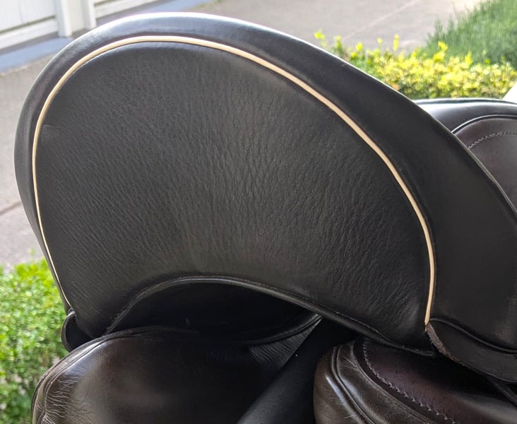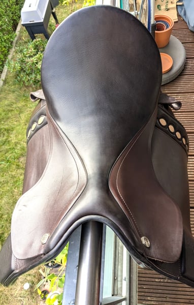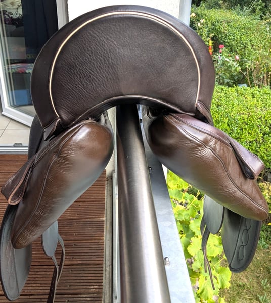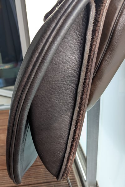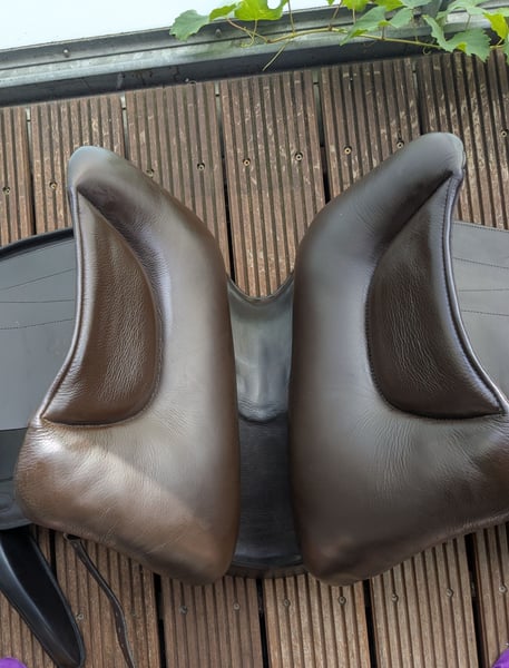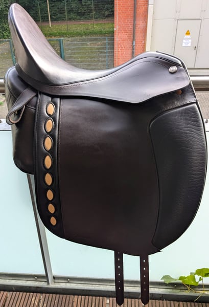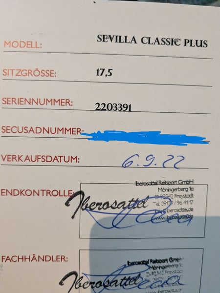 Ich verkaufe unseren Iberosattel "Sevilla Classic", den ich 2022 NEU von Iberosattel gekauft habe. Der Sattel hat leichte Gebrauchsspuren (siehe Fotos), die aber äußerlich nicht zu sehen sind, bis auf zwei sehr kleine Kratzer (siehe vorletztes Foto) Sitzgröße: 17,5 Sitzform: Tiefer Sitz Kammerweite: 32 Pauschen sind mit Klett abnehmbar NP 3.350 Euro Gerne kann der Sattel gegen eine Kaution zur Probe geliehen werden