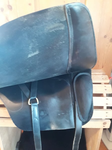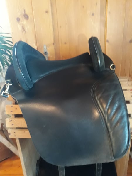 Hallo ich biete hier einen tollen wenig genutzten und gepflegten spanischen barocksattel mit lederbaum hidalgo valencia2. älters modell...in schwarz.mit messingringen...der Sattel passt sich der form des pferde rückens an..er passt sehr gut auf runde pferde mit wenig widerrist....die Kissen sind durch klett verstell und austauschbar der Sattel lässt sich dadurch sehr gut anpassen die Galerien geben einen guten sichereren sitz ..ich gebe ihn nur ab weil er meiner stute zu lang ist...mit dabei sind ein kurzgurt mit Gummizug 60 cm spanische satteldecke ...die klettkissen haben 4 cm stärke u.sind 43 cm lang ....Sitzfläche 33 cm (gr42 44) länge des sattel sind ca 50 ...sattelblatt ca 44cm