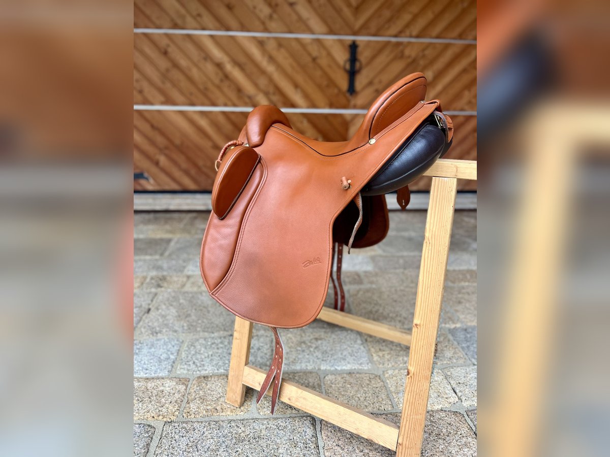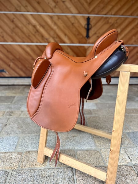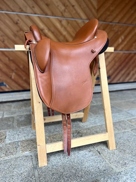 Ich verkaufe diesen wunderschönen, absolut neuwertigen Zaldi-Sattel (er lag nur wenige Male auf meinem Pferd). Er wurde mit neuem hochwertigerem Füllmaterial aufgepolstert. Mitverkauft wird das original Schaffell-Zalea sowie passende Steigbügelriemen. Die vorderen Pauschen sind verstell- bzw. abnehmbar.