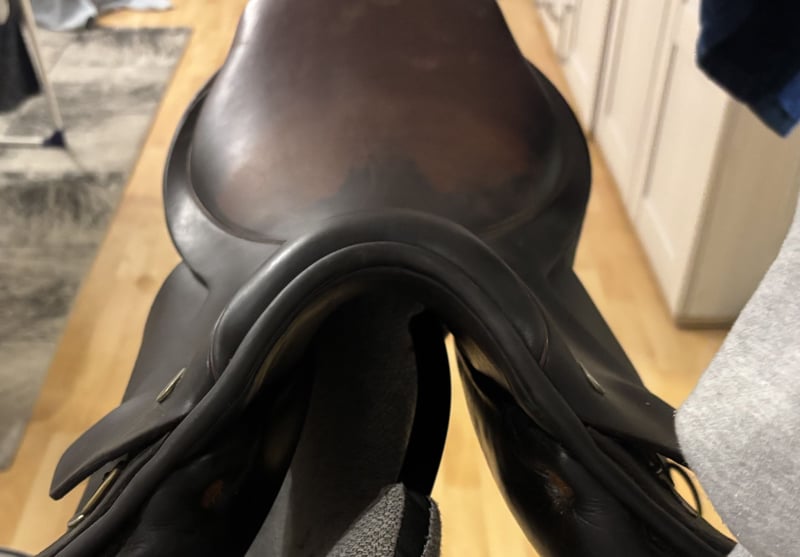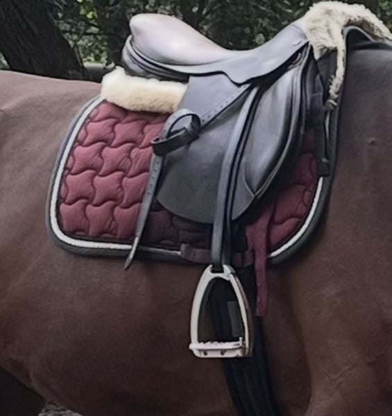 Ich verkaufe hier meinen dunkelbraunen Cobra Springsattel, den ich selber nur sehr wenige Monate benutzt habe. Ich weiß das genaue Modell leider nicht oder die Weite der Kammer (war benutzt auf einem über 1.70m Pferd mit breitem Widerrist, aber lässt sich anpassen) , ist aber der Marke Cobra, 17,5 Zoll und hat einen Tiefsitz. Anbei sind kleine, dünne Pauschen, die sich durch Klett verstellen lassen. Die Pauschen drüber sind weich, wie auch der Sattel an sich, so dass ein weiches angenehmes Sitzgefühl gegeben ist. An sich ist der Sattel auch in einem sehr guten Zustand, die Gurtstrippen sind in Ordnung und das Klett funktioniert. Abnutzungsstellen sind natürlich an den Stellen, an denen die Steigbügelriemen lagen, zu sehen, welche aber auf dem Bild deutlich stärker als in echt rüberkommen. Allerdings ist auf der Sitzfläche Richtung Hinterzwiesel eine von braun ins rötliche übergehende Verfärbung zu sehen die auf dem Bild auch viel starker rüberkommt als in echt. Auf dem ersten Bild fällt es kaum auf, ich hab den Sattel in diesem Zustand aber bekommen. Ansonsten sind leichte Kratzer am Logo zu sehen, sonst hat der Sattel keine auffalligen Mängel. Vom Vorgänger wurde der Sattel gut gefettet, weshalb der Sattel auch in naher Zukunft eher weniger Fett braucht. Den Sattel stelle ich gerne mit einem dazu gekauften Sattelschoner bereit (Loesdau 20€ → 10€, er hat kein Fell ist ein normaler Schoner) Bei Fragen gerne melden, oder wenn noch Bilder benötigt werden... :) hatte den Sattel für 750€ abgekauft, durch den nicht veränderten Zustand und die kurze Benutzung würde ich 700€ aber auf VB nehmen. Lieferung wäre schlecht, Abholung ist möglich oder ich kann ich auch gerne selber bringen :)