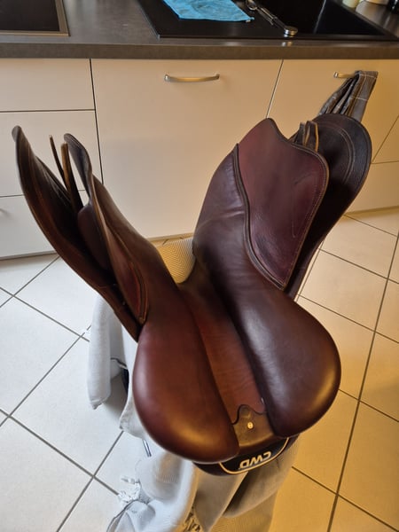 CWD SE 32 Mademoiselle 2G abzugeben, aufgrund von Zucht und Sportaufgabe, Wenig Gebrauchsspuren, 32 Zoll für großzügige Bewegungsfreiheit, 17,5er Sitzfläche, Kurzes Sattelblatt, ideal für 160 cm Körpergröße. Der Sattel wurde immer mit Öl gepflegt. Die Strupfenblattschoner fehlen. Als Zugabe Steigbügelriemen doubliert, Nylonverstärkt, 140 cm, gebraucht. Kann vor Ort gerne ausprobiert werden. Versand nur nach telefonischer Absprache. Privatverkauf, keine Garantie, keine Rücknahme Abholung bevorzugt