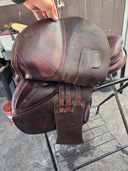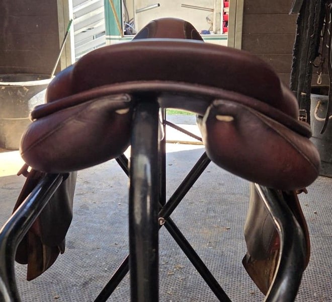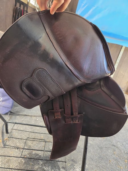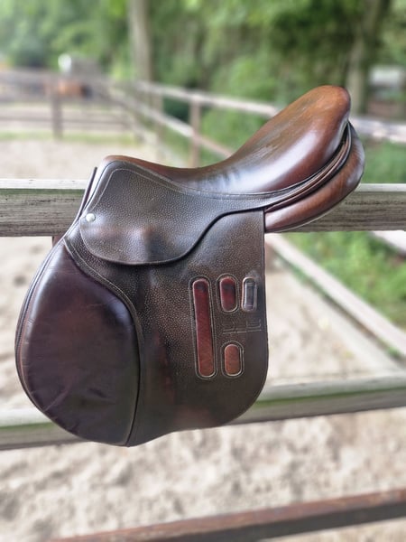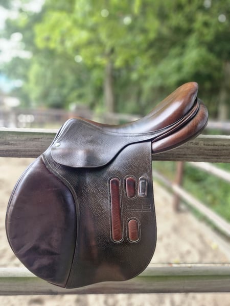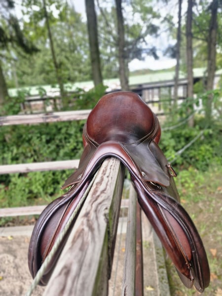 Gut erhaltener französischer Springsattel. Baujahr 2023, Größe 17,5 Passt auf viele Pferderücken.