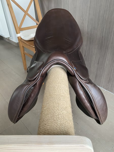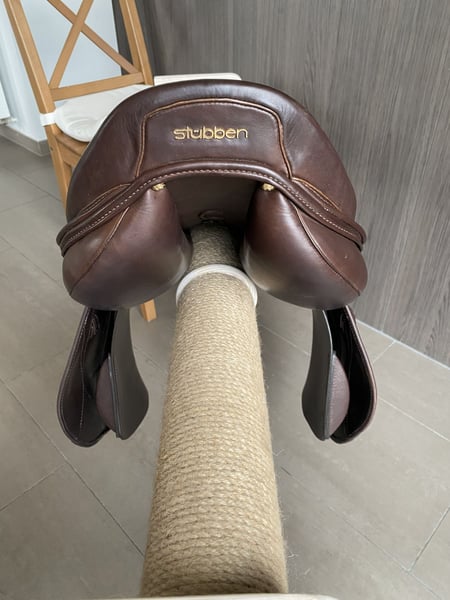 For sale jumping saddle Stuebben Aviator bought in 2024 as new. It is made to fit a bit wider horse with high withers. seat size 17,5" The saddle doesn't have any defects, was never dropped or took part in any accidents. Located in Belgium.