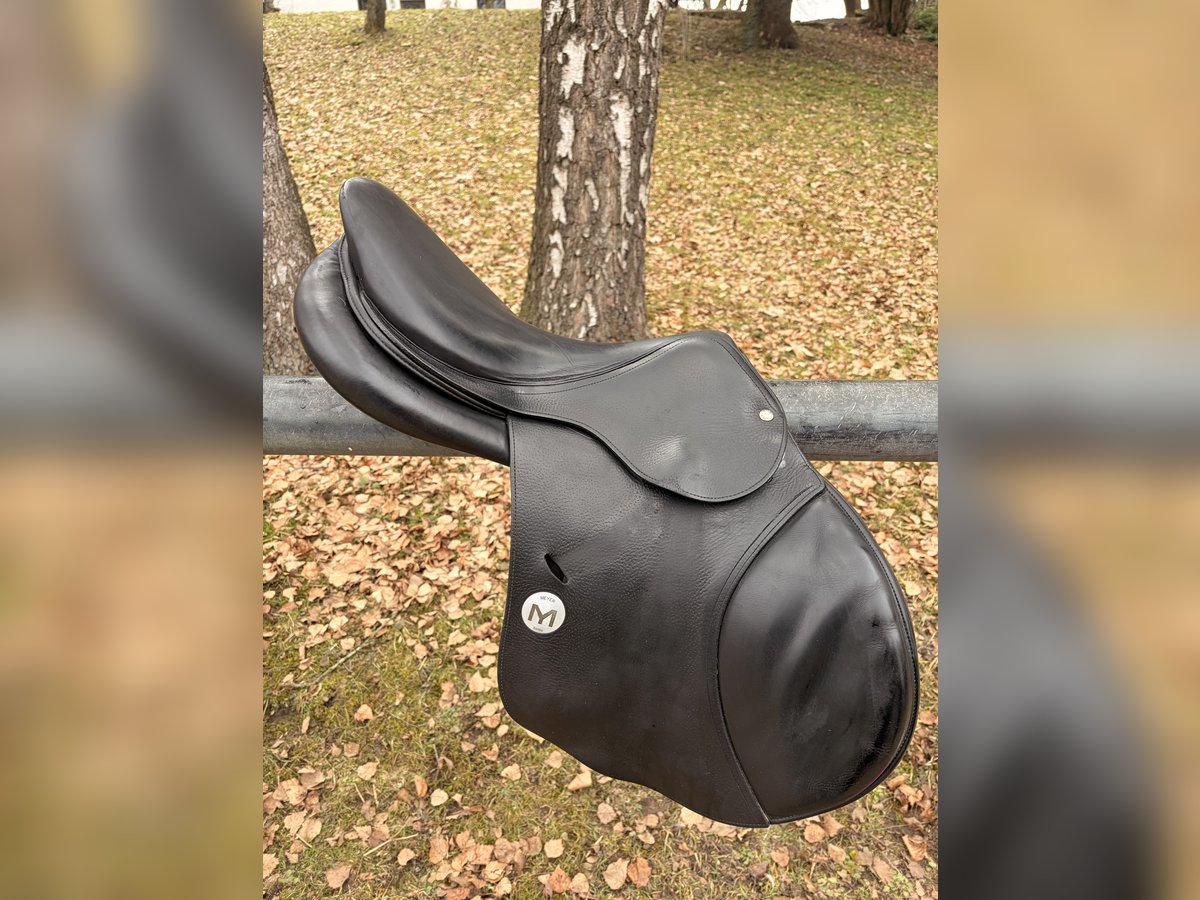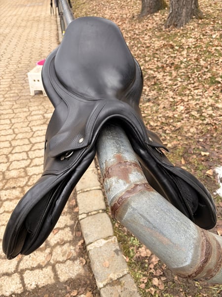 Top gepflegter Springsattel der französischen Marke Meyer. Wenig genutzt aufgrund von Schwangerschaften und dann Verletzung des Pferdes. Normale Gebrauchsspuren, keine Schäden. Mittlere Kammerweite