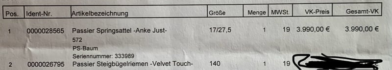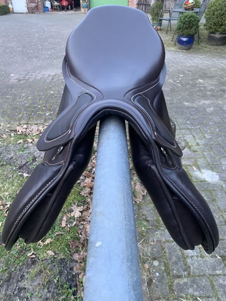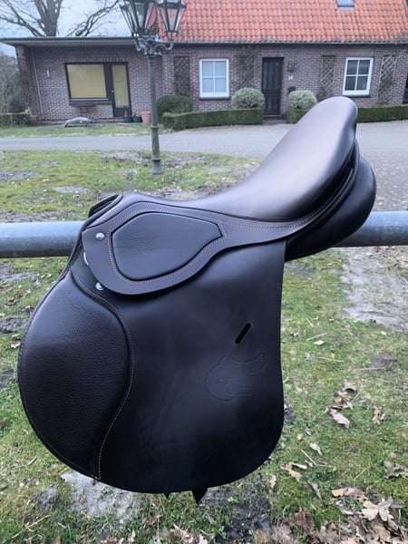 Traumhaft schöner und bequemer Springsattel im edlen Havannabraun. Das besondere Highlight des Sattels ist der PS-Baum von Passier. Beschreibung von Passier: Das Herzstück eines Sattels ist der Sattelbaum. So wurde der PS-Sattelbaum vor mehr als 50 Jahren von Passier entwickelt und wird bis heute ausschließlich von unseren Sattlermeistern in Langenhagen hergestellt. Zu seiner Fertigung sind mehr als 1.200 Arbeitsschritte notwendig, die Hauptwerkstoffe sind Holz und Leder. Um eine möglichst hohe Flexibilität zu erreichen, werden mehrere Bambusstreifen in den Sattelbaum eingearbeitet. Sattel-Modelle mit PS-Sattelbaum gibt es in sieben verschiedenen Größen: von 16“ bis 19“. Da jeder einzelne Sattel Maßarbeit ist, lässt sich bei Passier Sätteln ein Sattelsitz in einer Größe auch mit Satteltaschen in einer anderen Größe kombinieren. Sattelschiene Die Passier Sattelschiene stabilisiert den PS-Sattelbaum und sorgt gleichzeitig für die nötige Flexibilität. Bei der Passier Sattelschiene wird ganz bewusst auf Plattenmaterial verzichtet, um die Fasern des Stahls nicht zu verletzen und so größtmögliche Stabilität zu erhalten. Deshalb wird Federbandstahl verwendet, der durch Nachbearbeitung die für den Sattel optimale Form erhält. Sturzfeder Beim PS-Sattelbaum besteht die Sturzfeder aus einer hochwertigen Bronzelegierung, die im Knetverfahren hergestellt wird. Diese Sturzfeder hat eine Bruch- und Ausreißfestigkeit von weit über 600 Nm. Unter normalen Umständen kann eine Passier Sturzfeder also unmöglich brechen oder ausreißen. Kopfeisen Beim Passier Kopfeisen wird eine geschmiedete Chromvanadiumlegierung verwendet. Diese hat den Vorteil, dass das fertige Kopfeisen einerseits sehr stabil ist, sich im Nachhinein aber problemlos in der Weite verändern lässt. Ein Passier Sattel kann also einem Pferd exakt angepasst werden – auch mehrfach. Ein weiteres Merkmal sind die kurzen Kopfeisenschenkel, durch die eine sehr gute Schulterfreiheit erreicht wird. Für eine optimale Nietenfestigkeit und -haltbarkeit kommen Nietstifte anstelle von Hohlnieten zum Einsatz. Dehnungsfuge Die Dehnungsfuge ermöglicht den mit dem Kopfeisen verbundenen Materialien, sich bei jeder Kopfeisenveränderung problemlos der neuen Weite anzupassen. Das Holz und das besonders fest und ständig gegerbte Blankleder „wandern“ so einfach mit dem Kopfeisen. Der Sattel wurde neu gekauft, leider musste ich mich direkt danach von meinem Pferd trennen, so dass der Sattel gar nicht zum Einsatz kam. :( Zum Sattel dazugeben würde ich die ebenfalls ganz neuen Steigbügelriemen, die ebenfalls in havannabraun sind. Rechnung liegt vor. Versand nach vorheriger Zahlung des Preises möglich.