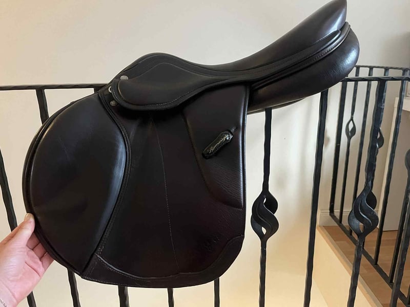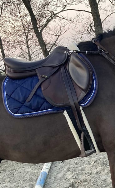 Ich verkaufe einen sehr gepflegten neuwertigen Springsattel der Marke Amerigo (Modell Vega Special) in der Farbe dunkelbraun. Ich habe den Sattel selbst 2021 neu gekauft (Original Rechnung vorhanden Kaufpreis 3035,70€) und bin sehr gerne mit ihm geritten, da er unglaublich sitzbequem ist (super weiches Leder). Trotz, dass der Sattel 4 Jahre alt ist, sieht es nahezu neu aus und hat sehr wenig Gebrauchsspuren (siehe Bilder). Wird lediglich wegen Pferdeverkauf verkauft. Vega Special / M+2,5/ Kissen 4/ 17 Zoll / dunkelbraun. Perfekt für Sportponys/Endmassponys. Wird mit Sattelschoner, aber ohne Steigbügel / Steigbügelriemen verkauft. Der Sattel kann in 25836 Garding angesehen werden, gegen Kaution kann er auch zum ausprobieren mitgenommen werden. Da es sich um einen Privatverkauf handelt sind Garantie, Rücknahme und Umtausch ausgeschlossen! Selbstabholer oder auch Versand möglich (bei Übernahme von Porto). Bitte bei Interesse NUR per Whatsapp kontaktieren 0178 3537390, oder telefonisch. Keine Nachrichten. Preis : 1500€ vb / gegen Angebot