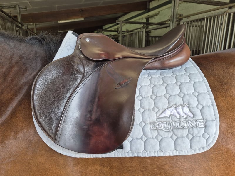 Zu verkaufen ist ein dunkelbrauner top erhaltener Springsattel. Aus 1.Hand und nicht übermäßig genutzt. Immer gut gepflegt und gelagert. Erworben wurde er 2009. Die Kammerweite und Polsterung ist unverändert. Der Sattel liegt super auf dem Pferd und man hat einen sehr sicheren Halt. Die Bügelriemen gibt es dazu.