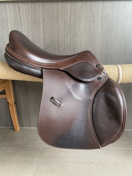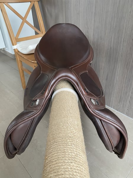 For sale Jumping saddle Prestige Rubino MF AS-X bought in 2025 as new. The Rubino MF AS-X saddle features a tree with the revolutionary new AS-X technology, born from the combination of two technologies: the Adaptive System and the X-Technology. The Adaptive System is the only shock-absorbing system that allows the tree axial and lateral bending. A tree that is unique on the market and completely innovative. Seat 17,5" Saddle is in perfect condition, used only a handful of times.