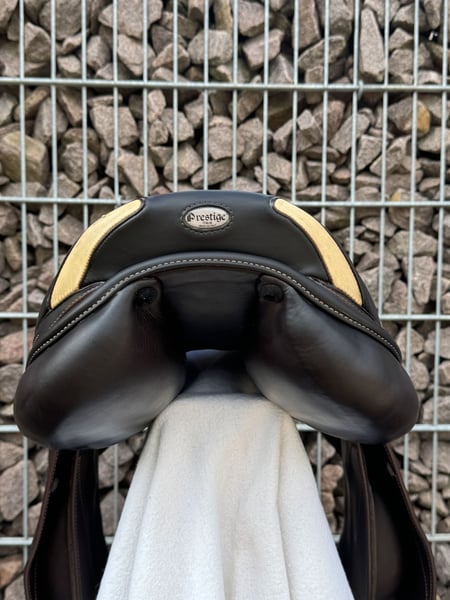 Prestige X Paris Springsattel – 17/32 Ich verkaufe meinen Prestige X Paris Springsattel in der Größe 17/32, perfekt für Reiter, die Wert auf Komfort und Qualität legen. Der Sattel hat eine 17-Zoll-Sitzfläche und eine Kammerweite von 32. Er wurde Ende 2021 neu vom Sattler gekauft und ist daher in einem sehr guten Zustand. Details: - Marke: Prestige X Paris - Größe: 17 Zoll - Kammerweite: 32 - Ausstattung: 3 Gurtstrupfen - Anpassungsfähigkeit: Lässt sich individuell anpassen und bietet optimale Passform - Pflege: Im September 2023 frisch aufgepolstert - Austauschbare Pauschen Ein idealer Sattel für Reiter, die Wert auf Qualität und Komfort legen! Bei Interesse oder weiteren Fragen stehe ich gerne zur Verfügung.