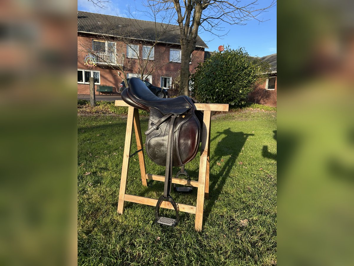 Hiermit verkaufe ich wegen Neuanschaffung meinen braunen Schockemöhle Cliff Barnsby Springsattel mit 17 Zoll Sitzfläche. Durch seine Klettpauschen kann man den Sattel besser an sich selber anpassen. Man hat einen stabilen Sitz in ihm. Der Sattel hat normale Gebrauchsspuren und ist voll-funktionsfähig. Eine Anprobe vor Ort in 26219 Bösel ist möglich. Gegen Hinterlegen des Kaufpreises ist ein mitnehmen zur Anprobe ebenso möglich. Abholung in 49084 Osnabrück ist nach Absprache auch möglich. Der Sattel kann versendet werden. Es sind weder Steigbügelriemen noch Steigbügel dabei. Da es sich um einen Privatverkauf handelt, schließe ich jegliche Gewährleistung aus. Es gibt keine Garantie.