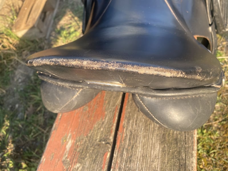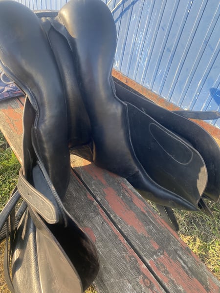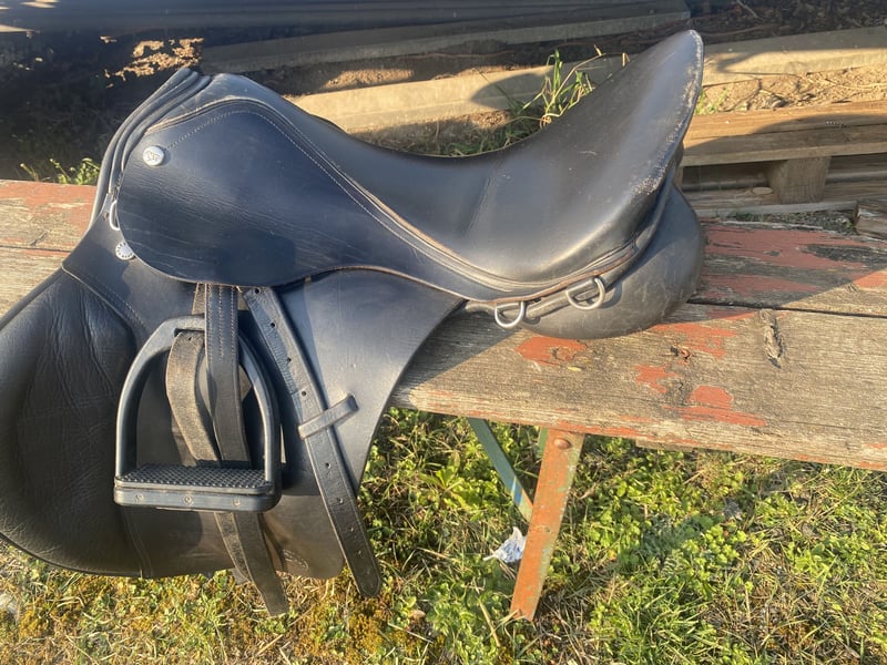 Unser gern genutzter Springsattel ist abzugeben. Er hat wie auf den Bildern zu sehen, normale Gebrauchsspuren ist aber ansonsten völlig unversehrt. Keine Risse o.ä., lediglich Abnutzung des Leders und somit sofort einsatzbereit. Inklusive Steigbügel. Die Kammerweite beträgt 15cm, gemessen wie am Bild zu sehen. Gerne melden bei Fragen.