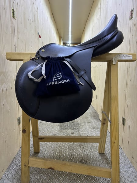 Ich verkaufe meinen am 30.11.2024 neu gekauften Springsattel von Massimo inklusive Sattelschoner und Garantiekarte (siehe Fotos), welche 5 Jahre Garantie auf den Sattelbaum gewährt. Er hat 17.5 Zoll und eine 36er Kammer (ursprünglich 38, dann aber für mein Pferd auf 36 verkleinert). Die Kammerweite beträgt etwa 17cm grob gemessen. Der Sattel ist auf mein Pferd (schmales Warmblut mit höherem Widerrist) angepasst, lässt sich aber durch einen Sattler sehr schnell und einfach erneut verändern/anpassen. Seit dem Kauf habe ich den Sattel aufgrund des Trainingszustandes meines Pferdes nur ca 50x benutzt- er ist also quasi wie neu und top in Form. Ich verkaufe ihn nicht wegen Unzufriedenheit oder Ähnlichem- die Sitzfläche ist für mich leider doch etwas zu groß. Er wird vor dem Verkauf selbstverständlich nochmal ordentlich geputzt. Verkauft wird nur der Sattel mit Schoner und Garantiekarte, nicht die Steigbügel und Steigbügelriemen. Gekauft habe ich ihn für 2350€. Bei Fragen oder Interesse gerne melden :)