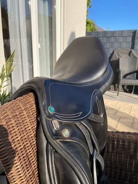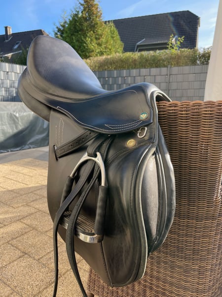 Wir verkaufen unseren sehr selten genutzten schwarzen Springsattel der Marke Prestige, Model Roma Jump New in der Größe 17/33 inkl Lederriemen, Sprenger Steigbügel und einem Bauchgurt in 130cm. Der Sattel ist aufgrund der seltenen Nutzung in einem sehr guten Zustand. Originalrechnung Reitsportbedarf Hackenbroch sowie Besitzurkunde mit Seriennummer vorhanden. Aktueller Neupreis nur des Sattels ca. 2.350€. Sprenger Steigbügel System 4, NP ca. 200€, Bügelriemen ca 100€. Abholung bevorzugt, ansonsten aufgrund des Wertes Banküberweisung oder Paypal-Freunde. Artikelstandort 53859 Niederkassel, Abholung bevorzugt. Bei Versand kommen die Versandkosten inklusive Versicherung mit dazu. Wir schließen jegliche Sachmangelhaftung aus.