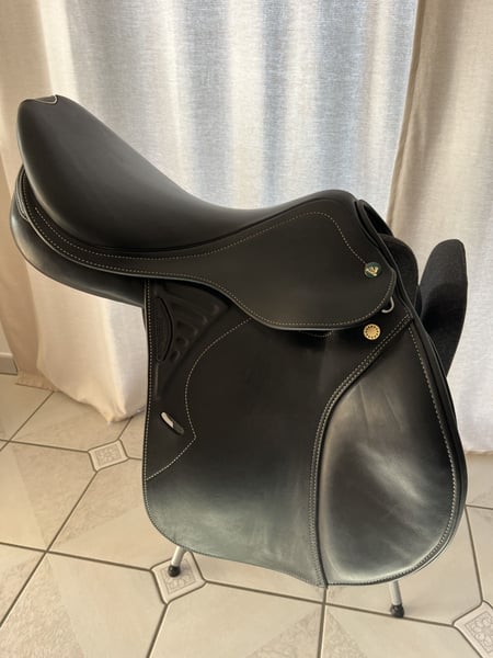 Super schöner und sehr gut erhaltener Springsattel von Prestige. Schwarz, Größe 17. Leider passt er nicht mehr durch einen Pferdewechsel. Gerne beantworte ich weitere Fragen bei Interesse.