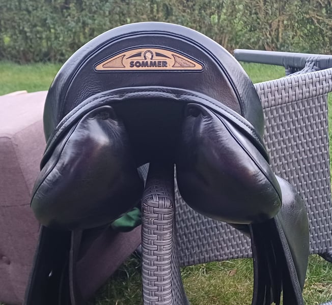Ich biete einen sehr sehr gut erhalten Springsattel Sommer Diplomat Exklusiv in 17,5 Zoll ohne jegliche Mängel oder Kratzer an. Kammerweite 31,5 bei Anfertigung. Mit Sattelschoner und Zertifikat. 30 Jahre Herstellergarantie. Gut anpassbar. Mit Kniepauschen. Sehr guter Sitzkomfort. Farbe: schwarz V förmiges Kopfeisen das auch austauschbar wäre bei Bedarf. Der Sattel ist gut anpassbar. Preis und Versand ist verstellbar.