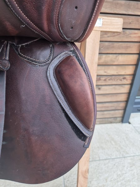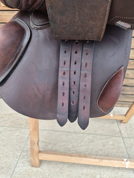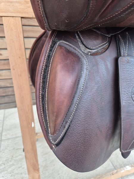 Verkaufen super, bequemen Sattel. Hersteller: Tech 1 (gehört zu Erreplus) Größe: 17 Zoll Kammer: 33, bereits geweitet (thermisch veränderbar) Kniepauschen sind klettbar Farbe: braun Alter: Juni 2021 Zustand: sehr gut, keine Beschädigungen, lediglich eine Naht wurde mal repariert. Wurde im Herbst neu gepolstert. Mit tiefem Sitz aus hochwertigem doubliertem Rindsleder. Kurz, aber flächige Kissen. Ein Versand ist bei Kauf gegen Übernahme der Versandkosten möglich. Privatverkauf – kein Umtausch oder Reklamationen möglich. Keine Sachmangelhaftung gemäß EU-Recht.