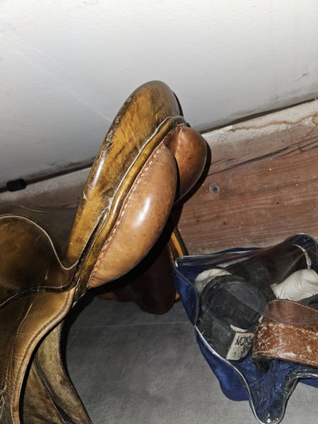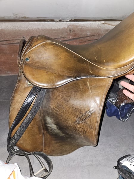 Ich verkaufe schweren Herzens meinen Springsattel von Stübben. Leider wird der Sattel wegen Kauf eines neuen Sattel nicht mehr verwendet. Zum Stübbensattel: -Springsattel -Älteres Modell -Viele Gebrauchsspuren, jedoch noch gut verwendbar (Gurtstrupfen müssen evtl. irgendwann ausgetauscht werden) -Hat gut auf meine 150 cm große Stute gepasst. -Ca. 17 Zoll -Breite Kammerweite (gut für etwas "Dickere" pferde) -Im allgemeinen Lang Bei Interesse und Wunsch an mehr bildern gerne melden. Preis auf VB Bitte nur Abholung.