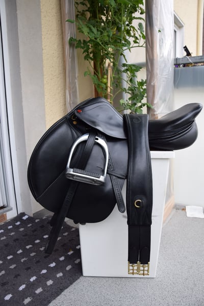 Verkaufe/Tausche Hochwertigen Springsattel von Albion mit Zubehör. Hersteller: Albion Modell: Kontrol Farbe: Schwarz Sitzgröße: 18 Zoll ca. 41cm Kammer: laut sattler er schmall für warmblüter mit viel wiederrist (Masse sehe bilder) Kammer kann vom sattler angepasst werden Der Sattel kann in der Polsterung und in der Kammerweite entsprechend auf fast jedes Pferd angepasst werden. Die Albion Sattel wurden von Klaus Balkenhol mitentwickelt und entsprechend hochwertig (Neupreis 2.,600,- € und erstklassig konzipiert sind diese Sätel. Der Sattel ist ausgestattet mit einer sehr bequemen und weichen Sitzfläche und kräftigen Pauschen, die problemlos an das Bein des Reiters angepasst werden können und optimalen Halt fürs Springen und im Gelände bieten. Für die optimale Lage auf dem Pferd ist er mit Kellkissen, einem schön weiten Wilibelkanal und einer gleichmäßigen Polsterung ausgestattet. Das Leder des Albion Kontrol ist super weich und anschmiegsam. Lieferumfang: Albion Springsattel, neuwertige Alu steigbügel von equi wing, neuewerige Steigbügelriemen von EMPORIO, 4HORSES Equiva Ledersattelgurt 135cm gebraucht. Preis VHB Tausche gegen reitsattel in Cognac, freemax western oder startrekk western