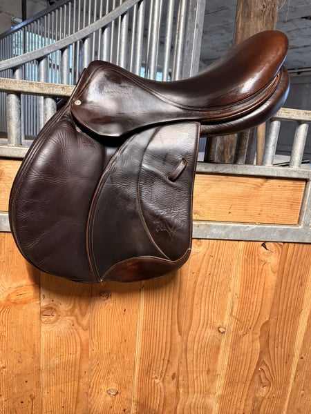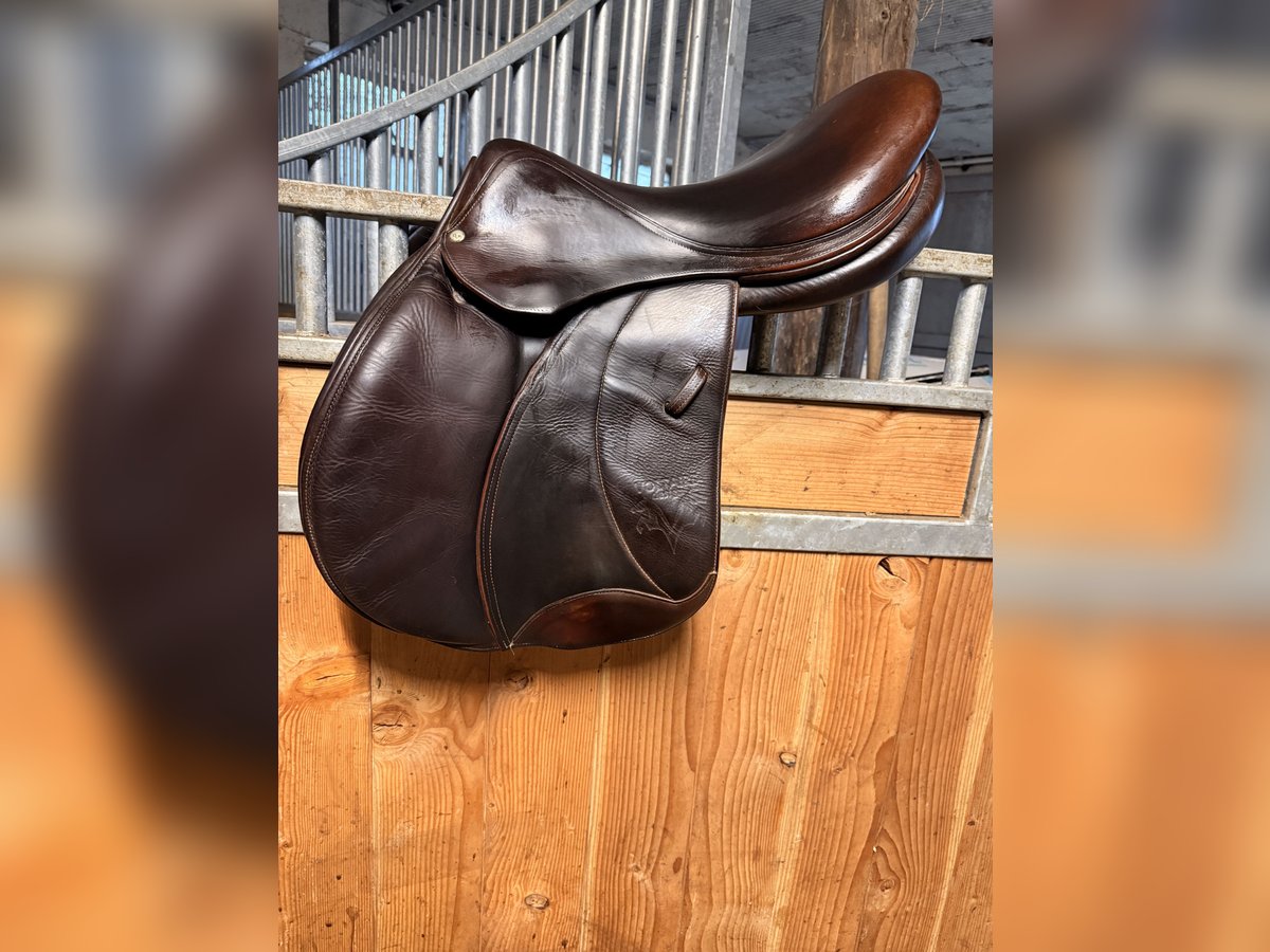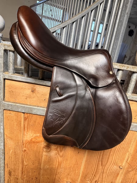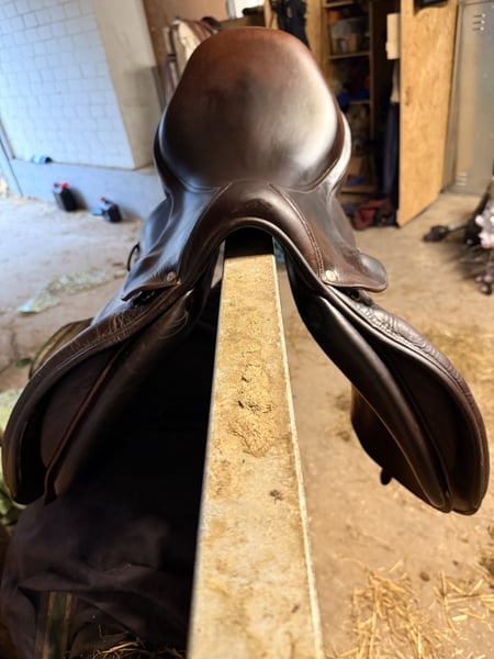 Voltaire Palm Beach Springsattel 18" (wie bei Prestige 17,5 Zoll) guter Zustand Ich verkaufe meinen hochwertigen Voltaire Palm Beach Springsattel in dunkelbraun. Der Sattel ist sehr bequem, hat weiches Kalbsleder und bietet guten Halt beim Springen. Er wurde immer gepflegt und trocken gelagert. Details: • Marke: Voltaire Design • Modell: Palm Beach • Sitzgröße: 18 Zoll • Baumform: 3AA • Ausstattung: PRO / B15 / D15 • Baujahr laut Stempel: 2012 Zustand: Der Sattel befindet sich in gutem gebrauchten Zustand mit normalen Gebrauchsspuren (siehe Fotos). Das Leder ist weich und gut erhalten.