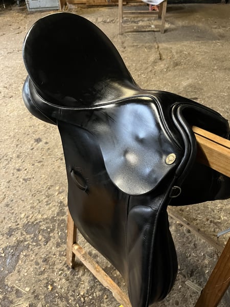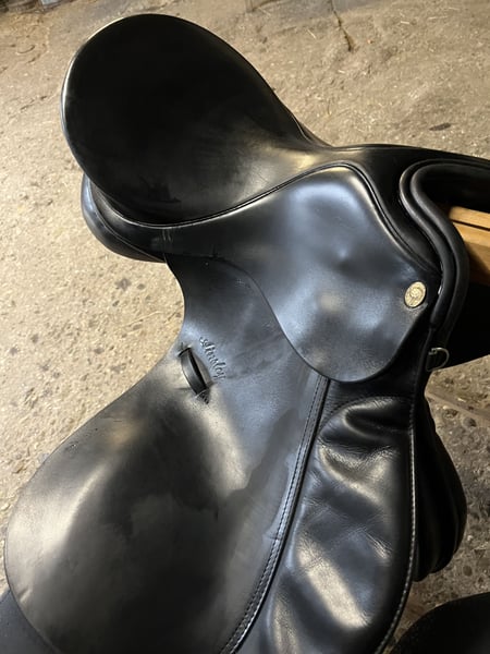 Zum Verkauf steht ein gepflegter Ainsley-Sattel (17,5 Zoll Sitzgröße), ein klassischer englischer Markensattel, bekannt für seine hervorragende Lederqualität und bequeme Passform. Der Sattel wurde vom renommierten Sattler Van den Boomen angepasst und regelmäßig gepflegt. Lag auf einem Endmaßpony