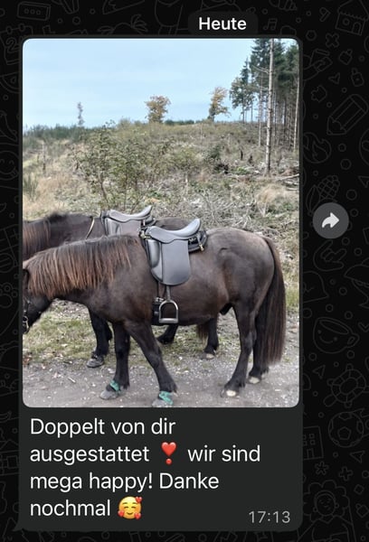 ♥️ Frühlingsluft, Ponyduft, und ab gehts ins Gelände… Wenn Dir noch der passende Sattel fehlt, dann teste jetzt den G5 von Jeremy Rudge — Island- und Freizeitmodell für Erwachsene & Jugendliche. • Eine extraweite Kammer und der besondere englische Ponybaum sorgen für sicheren Halt, auch auf sehr rundrippigen Typen. • Kein Baukasten. Keine Stangenware. Speziell gemacht für Pferde mit wenig Widerrist wie Isländer, Haflinger, Tinker, oder ähnlich… • Ponybegurtung mit Vorgurtstrupfe gegen Nach-vorn-Rutschen • Schafwollpolsterung für optimale Rückenanpassung • Hochwertiges Echtleder • Bequemer weicher Sitz – ohne einengende Pauschen • Viele Packringe für lange Ritte und unvergessliche Abenteuer Abverkauf neuwertiger Vorführsättel in unterschiedlichen Leder- und Farbvarianten Preise: ab 1.500 € ✏️ So einfach gehts: Sende 2 Fotos Deines Pferdes (Seite & Rücken) per Kleinanzeigen oder WhatsApp an 01703445541. Du erhältst einen kostenlosen Passform-Check und wenn ein Sattel in Frage kommt, unverbindliche Kaufvorschläge. Ausgiebiges Probereiten in Deiner gewohnten Umgebung: 3 Tage inkl. versichertem Hin- ggf. Rückversand: 79 €, jeder weitere Tag: +15 € Zahlungsmöglichkeiten: Paypal mit Käuferschutz oder Überweisung. Rechnung mit MwSt.-Ausweis.