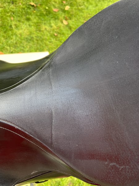 Wurde als eigener Sattel für den Schulpferdeunterricht gekauft, da die Sättel der Reitschule zu klein waren. Verden, Hamburg und Bamberg sind nach Absprache gegen einen kleinen Aufpreis möglich. Auf der Sattelfläche sind nur Falten, keine Risse!
