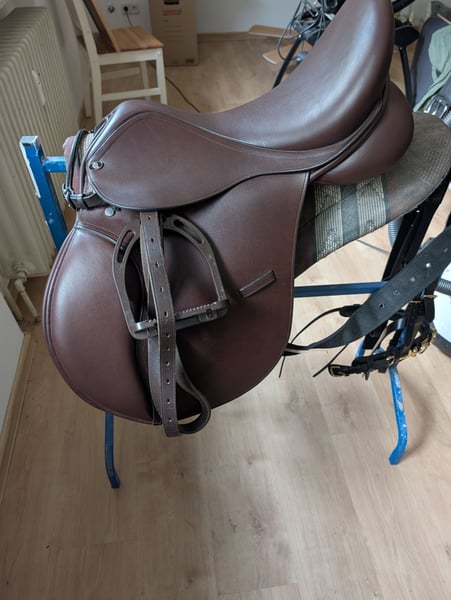 Leder Vielseitigkeitssattel von Waldhausen mit wechselbarem Kopfeisen und klettpauschen. 17,5 /18 Sitzfläche. Wird verkauft ohne Steigbügel, Steigbügelriemen.
