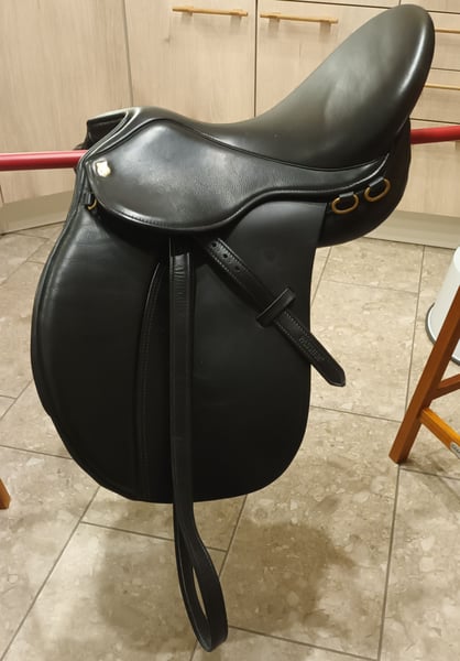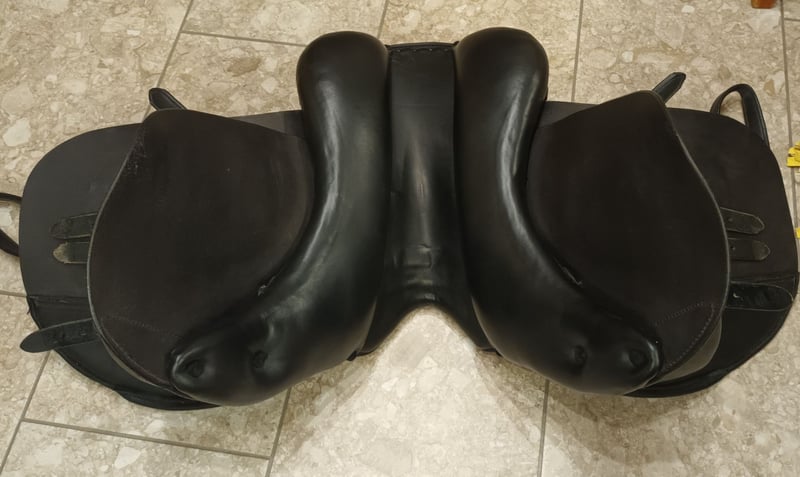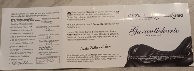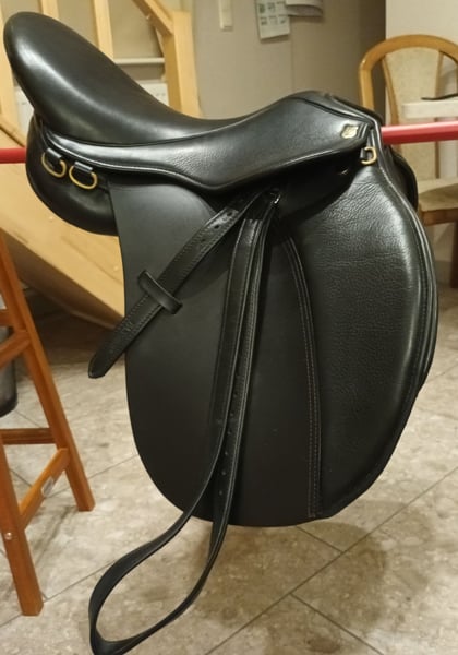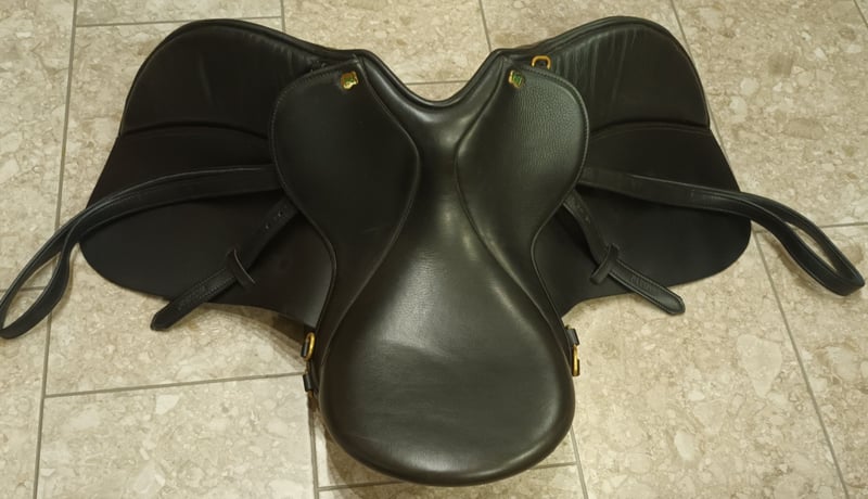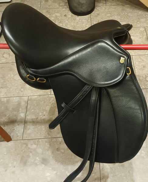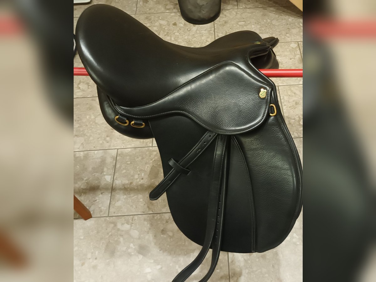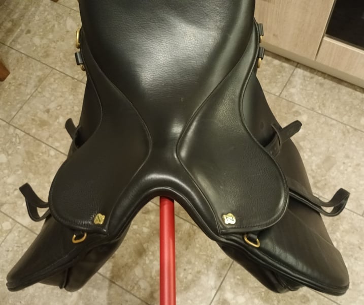 Biete einen gebrauchten aber neuwertigen Massimo SON 2 VS Sattel mit französischen Kissen für kurze Pferderücken in der Sitzgröße 17,5 und einer ursprünglichen Kammerweite 34 wurde vergrößert auf 37, Incl. der Bügelriemen 140cm von Passier, Original gefütterten Sattelschoner Der superweiche Sattel wurde für einer sehr "unförmige" Haflinger Stute angeschafft. Leider veränderte die bereits 10 jährige Stute fast Monatlich. Was ein Anpassen des Sattels unmöglich machte. Laufend mussten neue Sattelgurte her und immer wieder passte er dann doch nicht. Die Stute hat einen breiten Rücken wo bei Regen das Wasser nicht runterläuft, dazu hat sie eine total Kreisrunde Bauchform, selbst mit Forderzeug keine Chance. Normale Pferde haben eine Ovale Bauchform deshalb kann man ja auch Sattel drauf befestigen. Bei meiner Stute geht das nicht. Ich habe mich deshalb entschieden sie ohne Sattel weiter zu bewegen. Somit lag der Sattel nun die letzten 4 Jahre nur zum einstauben rum. Er ist vollkommen unverbraucht keine verschlissenen Riemen oder dergleichen. Das einzige Sichtbare sind durch das sehr weiche Leder die Abdrücke vom Sattelgurt an untersten Auflage. Das Leder ist extrem weich und bequem zu sitzen, kein zu hoher Zwiesel der die Bewegung einschränkt für lockeres unbeschwertes Reiten mit eher kürzeren Bügel. (Was mir selbst nicht so liegt, habe lieber langes Bein) Durch das sehr weiche Leder ist er etwas empfindlicher als die Glanzpolierten härteren Lederarten. Er zerkratzt also schneller. Nix für lange Fingernägel . Er wird komplett mit den auch sehr weichen Bugelriemen von Passier und Sattelschoner abgegeben. Der Sattel ist mit 1660 ,€ nicht billig jedoch auch nicht so teuer wie ein neuer. Angucken in 21354 Barskamp, bar bezahlen und mitnehmen.