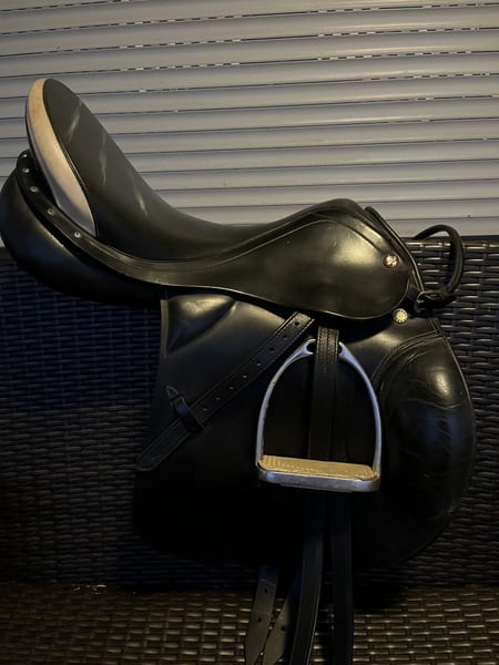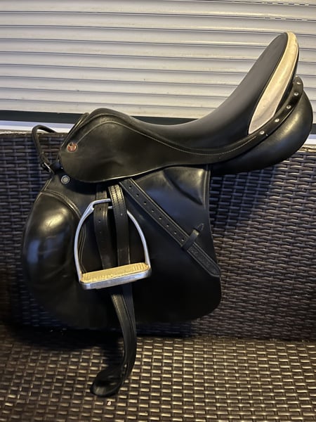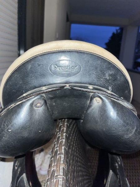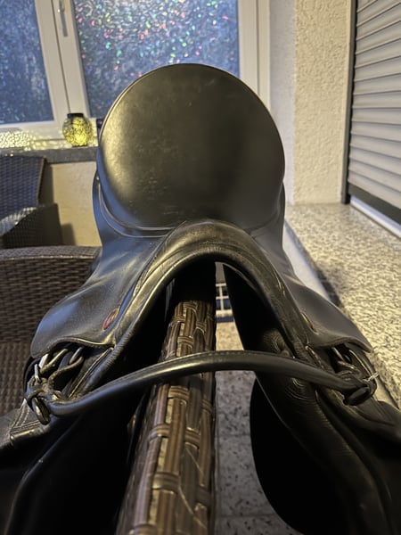 Zum Verlauf steht ein Vielseitigkeitssattel der Marke Prestige aus dem Venezia Modell. Ich habe den Sattel vor knapp 2 Jahren vom Sattler für 1.400€ gekauft und ihn seitdem in Top Zustand gehalten. Steigbügelriemen und Steigbügel sind komplett neu und die Steigbügel werden vor dem Verkauf nochmal komplett gereinigt. Marke „Prestige“ Modell „Venezia“ Sitz 17 Zoll Kammer 32 PayPal Raten kaufen möglich. Kein Versand zur Probe. Kein Tausch. Über den Preis kann man verhandeln