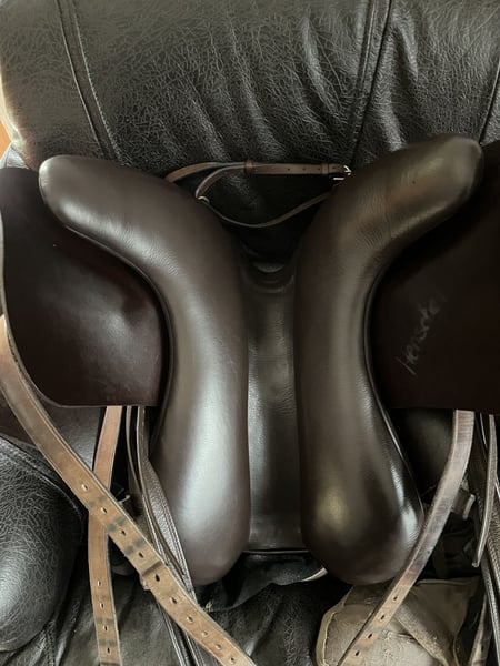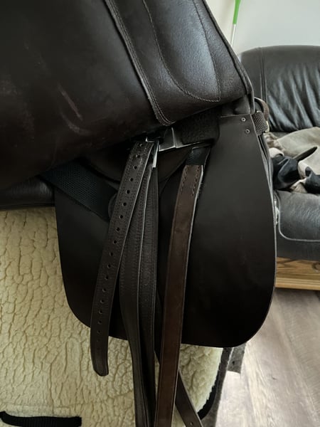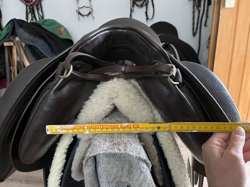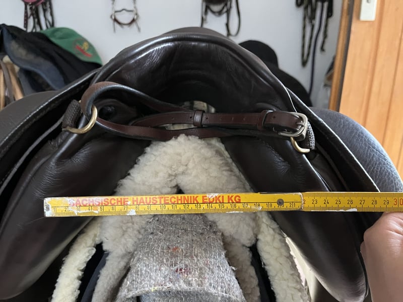 Mega toller Sattel, welchen ich nun als Zweitsattel verwende. Dafür ist er zu schade. Kein Notverkauf, keine Eile. Tolles, freies Sitzgefühl. Für Gelände, Dressur, Springen (ich denke bis A) geeignet. Nur abzugeben, weil ich perspektivisch noch einen Ibero Sattel möchte oder Sommer Alpha Vaquero. Bis dahin kann er auch genutzt werden und bleibt im Bestand. Sitzgröße: 17 Zoll (passt locker bis Größe 38/40) Gleicht einer 17,5 Sitzgröße 18 in diesem Modell ist groß Größer als andere Sättel mit Sitz in 17 oder 17,5 Super bequem, auch für längere Ritte Farbe: Mocca/braun Kammerweite in cm: 20/21 Kammerweite kalt verstellbar Schwung: Mittel bis leicht Kurze Auflagefläche: ca 41-43 cm Halbtiefer Sitz, engt nicht ein Lag auf einer kurzen Araberstute mit wenig Schwung. Die vordere Gurtstrippe wurde versetzt, damit der Sattel nicht in die Schulter gezogen wird, sondern mittig sitzt (Bild 8). Verrutscht dadurch überhaupt nicht, super Sitz im Schwerpunkt und kein Druck auf die Schulter. Bild 9 zeigt die ursprüngliche Lage der Gurtstrippe. Die Polsterung wurde überarbeitet, ist weich und gleichmäßig verteilt. Stand Mai 2025! Gepflegt, trocken gelagert, top Zustand (neuwertig). Preis verhandelbar, aber realistisch bleiben. Im Umkreis komme ich gern zur Anprobe vorbei. Inklusive Sattelschoner von Sommer. Privatverkauf, keine Rücknahme oder Garantie