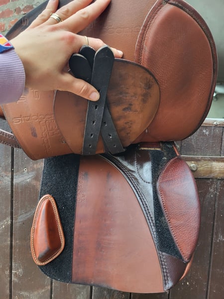 Ich verkaufe meinen geliebten Stübben VSS Sattel Roxane inkl Steigbügelriemen und Claridge House Leder-Sattelgurt Naira. Der Sattel befindet sich in einem sehr guten, gepflegten Zustand mit leichten, altersüblichen Gebrauchsspuren. (Siehe Fotos) Details: * Marke: Stübben * Modell: Roxane * Typ: Vielseitigkeitssattel * Kammerweite: 34 * Sitzfläche: 18 Zoll * Leder: Rindsleder * Pauschen: * Klettpauschen (individuell verstellbar) Können natürlich auch ausgetauscht werden *Baujahr: 2018 Der Sattel bietet einen sehr sicheren Halt durch den tiefen Sitz sowie optimale Unterstützung für das Bein durch die großen Pauschen. Noch dazu ist der Sattel super bequem. Die Klettpauschen ermöglichen eine individuelle Anpassung. Dieser Sattel ist sowohl im Springen, Gelände und auch in der Dressur super zu reiten. Der Sattel wurde stets gepflegt und trocken gelagert. Dazu wird der Claridge House Leder-Sattelgurt Naira abgeben. Weich gepolsterter, anatomischer Leder-Sattelgurt mit drei D-Ringen und beidseitigen Elastikeinsätzen sowie Rollschnallen. Gurtbreite 11 cm und Gurt Länge 145cm. Aus Echtleder Mit Rollschnallen Anatomischer Schnitt Weiche Polsterung Drei D-Ringe Beidseitige Elastikeinsätze Preis ist verhandelbar. Da Privatverkauf, keine Garantie oder Rücknahme.