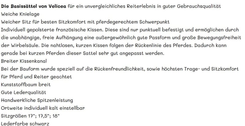 Velicea Vielseitigkeitssattel neu