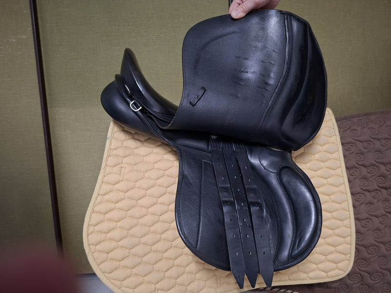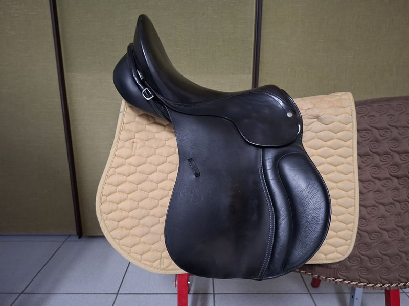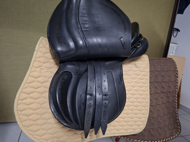 Ich verkaufe meinen Vielseitigkeitssattel aus schwarzem Leder, der für ein schmales Pferd mit hohem Widerrist (engl. Vollblut) maßgefertigt wurde. Die Sitzgröße ist 17,5 Zoll. Der Sattel ist in gutem Zustand und wurde regelmäßig gepflegt. Privatverkauf, keine Garantie, versicherter Versand möglich (10,49 EUR), aber keine Rücknahme. Sattel wird nicht zur Probe verschickt, kann aber gg. Kaution/Personalausweis zur Probe abgeholt werden.