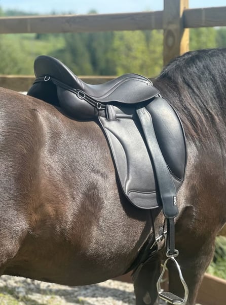 Luxus Freizeitsattel für kurze, sehr kräftig gebaute Pferde mit wenig bis mittelmäßig Widerrist — 17,5" — Gesamtlänge 45 cm, Auflagefläche ca. 42 cm, Kammweite 36, breiter Wirbelkanal (Maße siehe Fotos); Probeversand möglich. Hersteller: Jeremy Rudge Saddlery England Modell: Contour mit Ponybaum Neuwertiger Vorführer (12/2024), ca. 5x geritten Farbe/Leder: Tief Dunkelbraun doubliert Polsterung: Schafwolle Besonderheiten: Durchdachte pferdefreundliche Monoblatt Ausführung – mit dem Sattelblatt vernähte Kissen, Strupfen integriert – keine störenden Kanten oder frei liegenden Riemen am Pferdekörper. Softe Knielage, keine Pauschen – für ein direktes freies Reitgefühl im Stil eines Westernsattels Extras: Stickerei im Sitz, D-Ringe, Schonbezug Ideale Rückenform: gerade bis leicht geschwungen Preis: 3.990€ inkl. MwSt. (Neupreis: 6.900€) Testgebühr: bis 3 Tage 129 € inkl. Hin- & Rückversand, jeder weitere Tag +15 €. Zahlung per Überweisung oder PayPal mit Käuferschutz. Rechnung mit MwSt.-Ausweis. Über den Hersteller: Jeremy Rudge Saddlery steht seit 1989 für exklusive, in England handgefertigte Sättel von höchster Qualität – geschätzt von Reitern mit besonderen Ansprüchen. Weitere Informationen: jeremyrudgesaddlery.co.uk